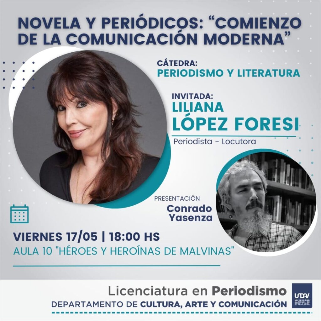 Desde la catedra de periodismo y literatura dirigida por el docente Conrado Yasensa, invitó a charlar junto con los alumnos, a la periodista y locutora, Liliana López Foresi sobre su carrera profesional como periodista, el fuerte vinculo que lleva con la literatura y como ve al periodismo en la sociedad actual.