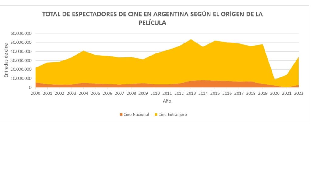 | Total de espectadores/as de cine en Argentina según origen de la película. Años 2000/2022 | |||