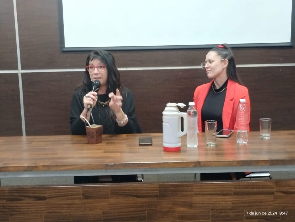 Disertación en el auditorio de la Universidad de Avellaneda de Viviana Vila junto a la licenciada Belén Fogar, moderadora, en la semana del periodista.
