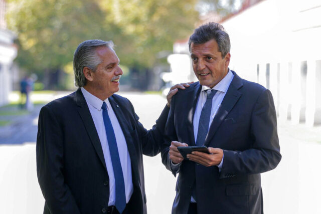 El primer mandatario recibio hoy al Sergio Massa, titular de hacienda en la quinta presidencial de Olivos, para reorganizar y enfocar nuevos focos con la negociaciones con en el Fondo Monetario Internacional (FMI), por la deuda y sobre la estrategia para contener las reservas en el Banco Central.