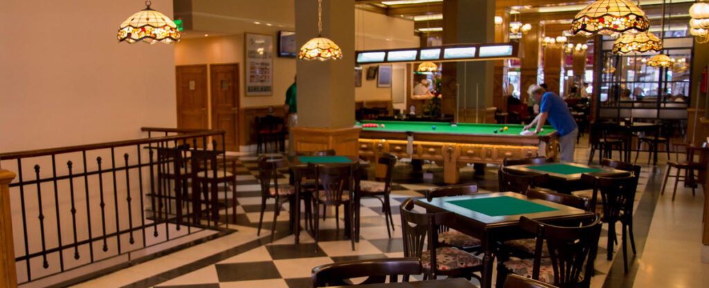 Los 36 Billares no sólo es un bar notable de Buenos Aires con muy buenas pizzas al molde, hamburguesas y empanadas. También tiene once mesas de billar, y como buen bar para jugar al pool, seis mesas de pool y una mesa de snooker.